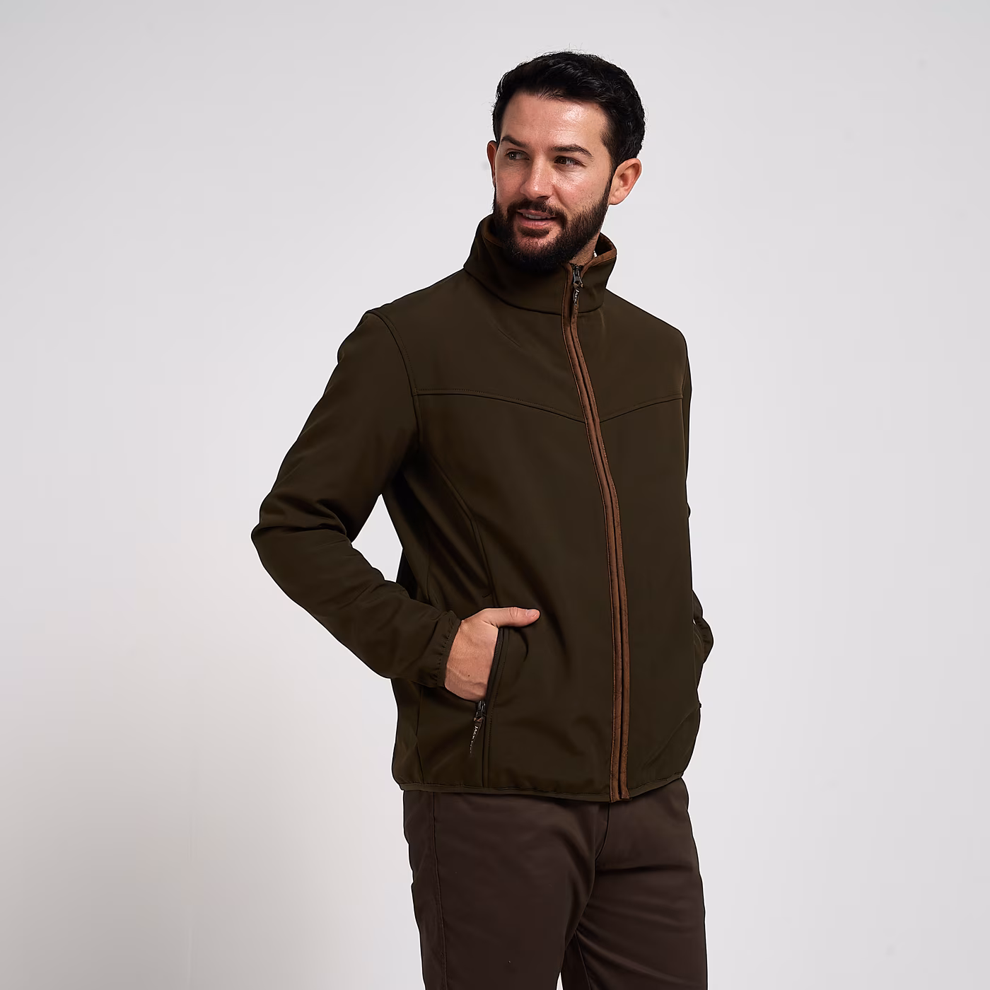 - Softshell construction for comfort and light weather resistance