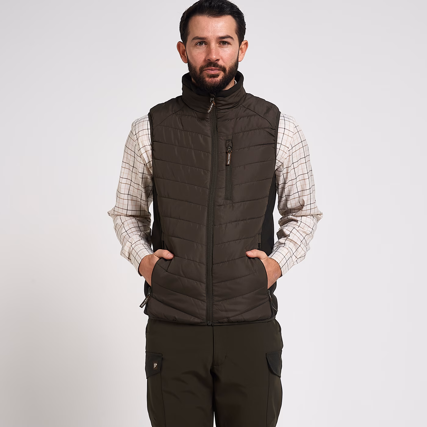 Whether you are on the shoot, tending the farm, walking the dog or tackling a long day on the hillside, this versatile gilet keeps you comfortable and organised. The full length front zip and chin guard give extra protection from the wind, while the zipped pockets keep your keys, phone and other essentials safely stowed. Finished with an elasticated waist for a neat fit and an embroidered Jack Pyke logo on the collar, it offers a practical, hard‑wearing layer with a clean, country look.